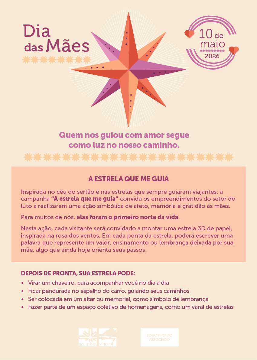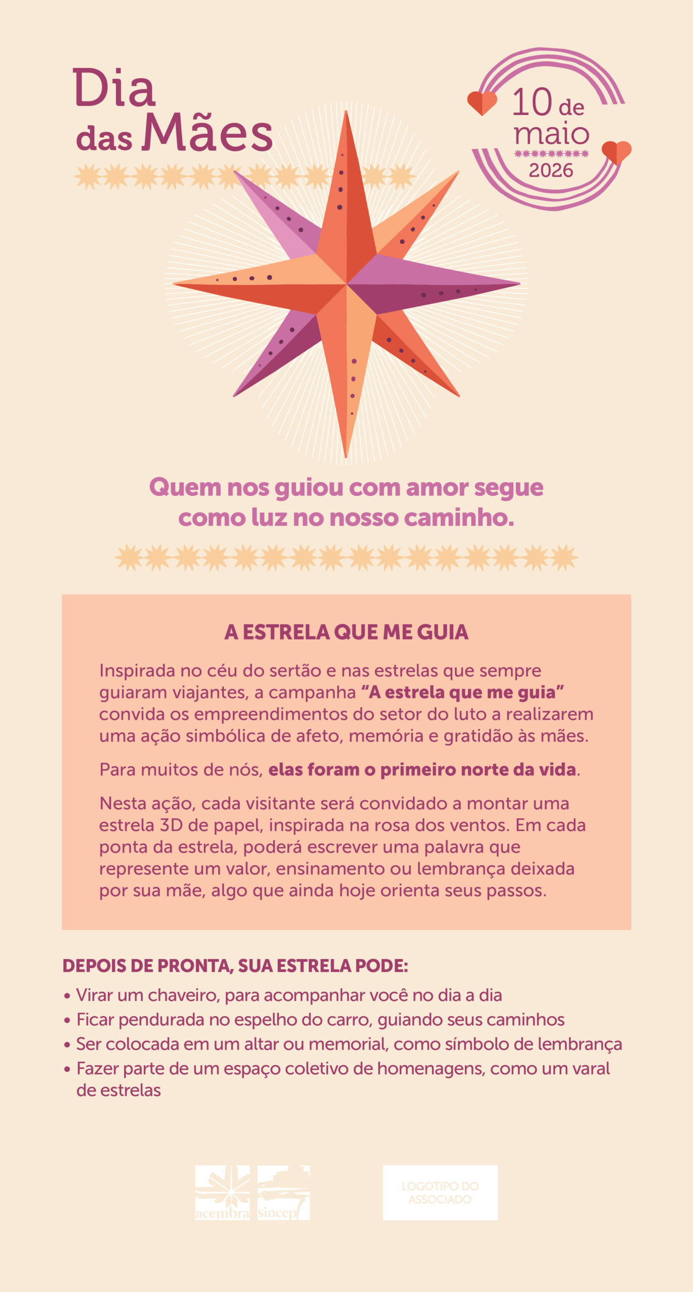 Inspirada no céu do sertão e nas estrelas que sempre guiaram os viajantes, a campanha “A estrela que me guia” convida os empreendimentos do setor do luto a realizarem uma ação simbólica de afeto, memória e gratidão às mães, aquelas que, para muitos de nós, foram o primeiro norte da vida.