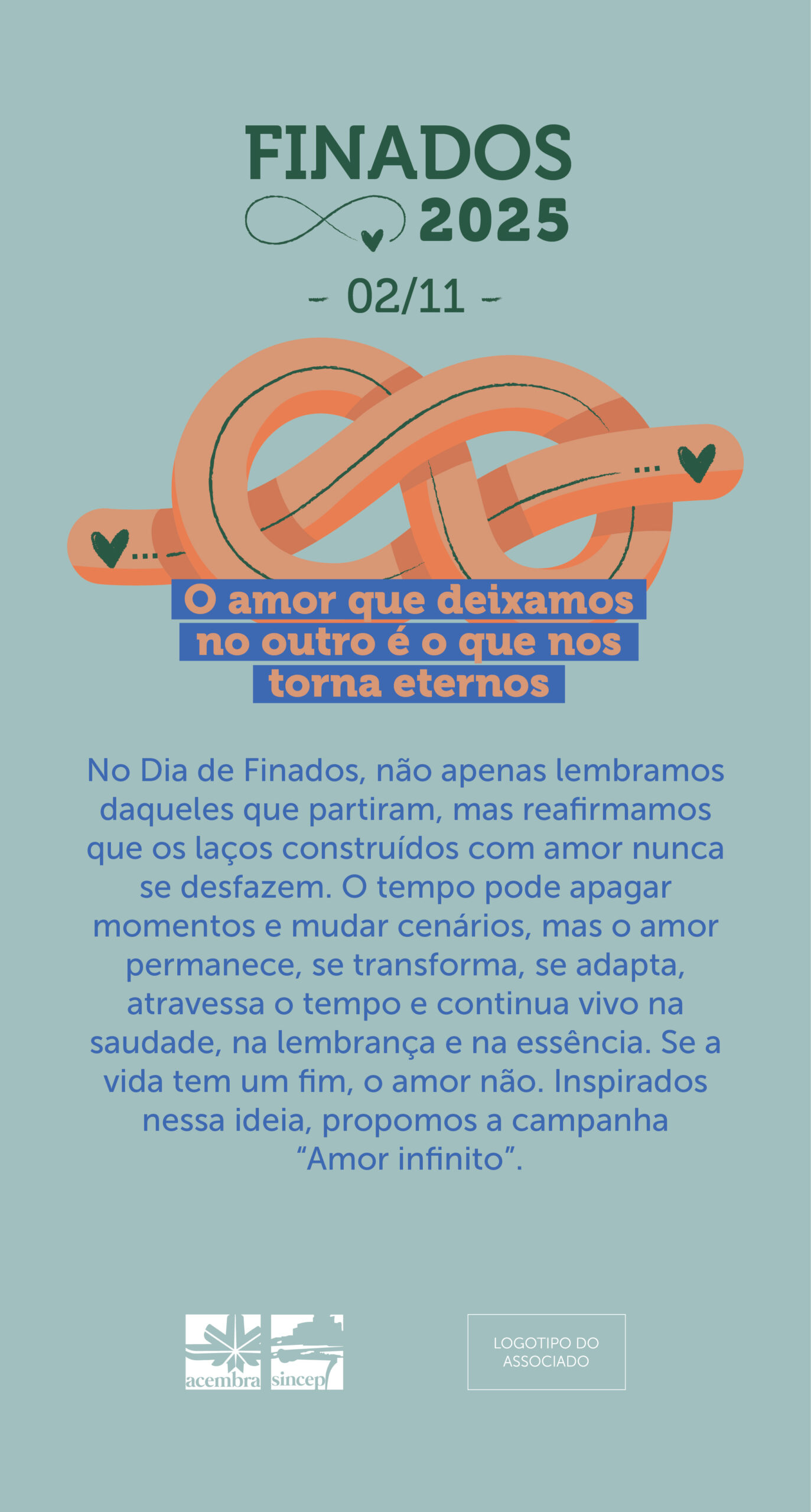 Neste Dia de Finados, convidamos todos a participar da ação Amor Infinito, um gesto simples e simbólico para celebrar que o amor nunca acaba e apenas encontra novas formas de se manifestar.